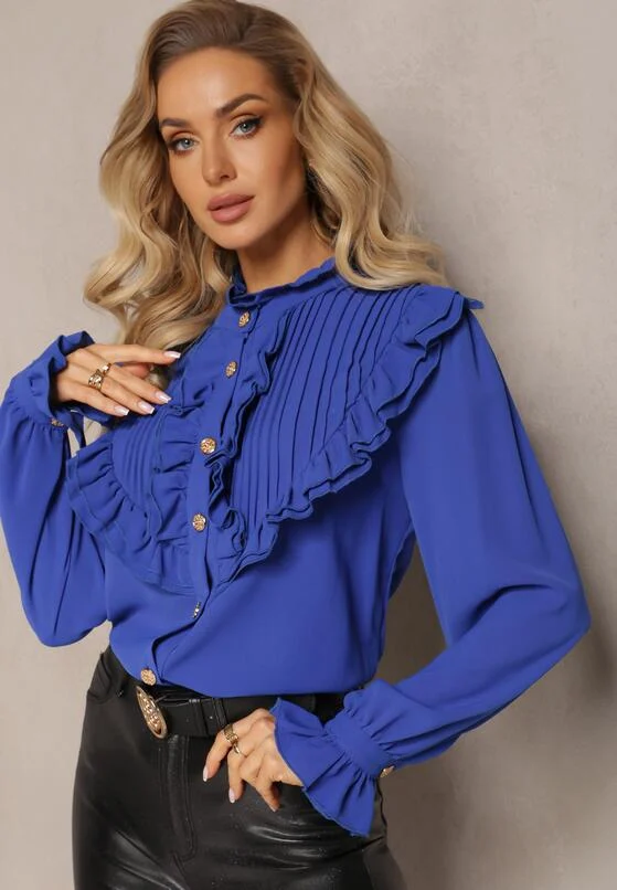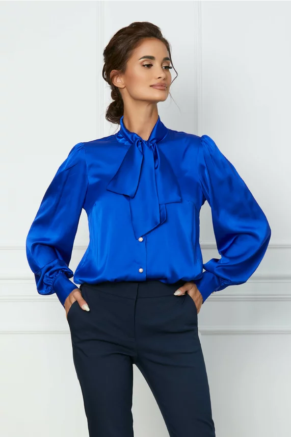 Camasa LaDonna albastru royal cu guler tip esarfa si nasturi perlati – CUMPARA ONLINE