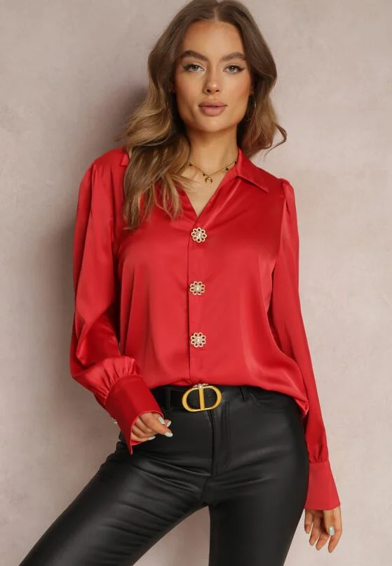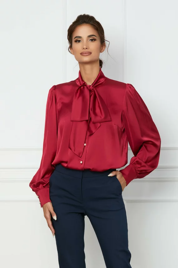 Camasa LaDonna bordo cu guler tip esarfa si nasturi perlati – CUMPARA ONLINE