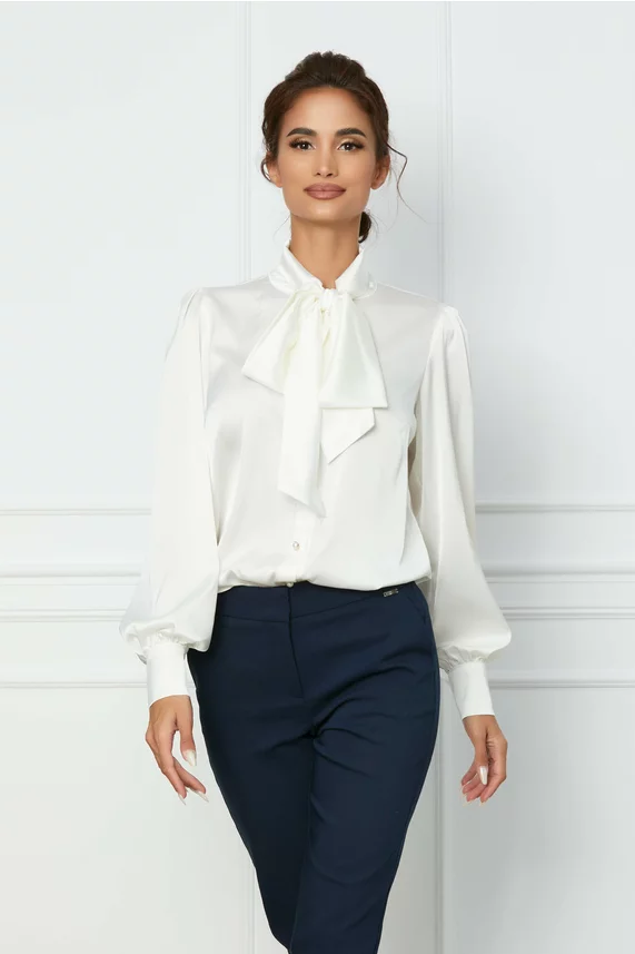 Camasa LaDonna alba cu guler tip esarfa si nasturi perlati – CUMPARA ONLINE