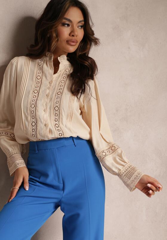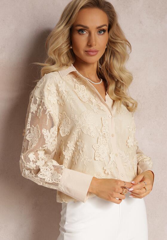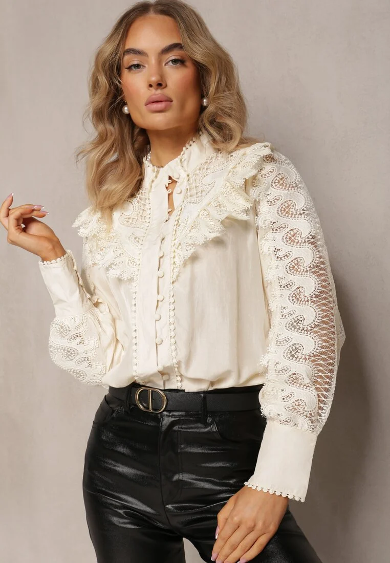 Camasa elegant Fofy ecru cambrat cu dantela pretioasa – CUMPARA ONLINE
