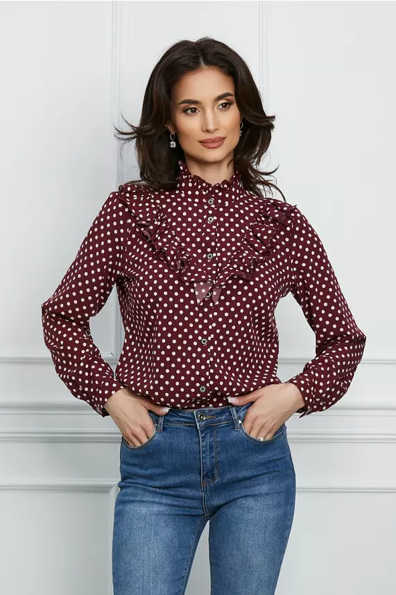 Camasa Daniela bordo cu buline roz –CUMPARA ONLINE pe dyfashion.ro