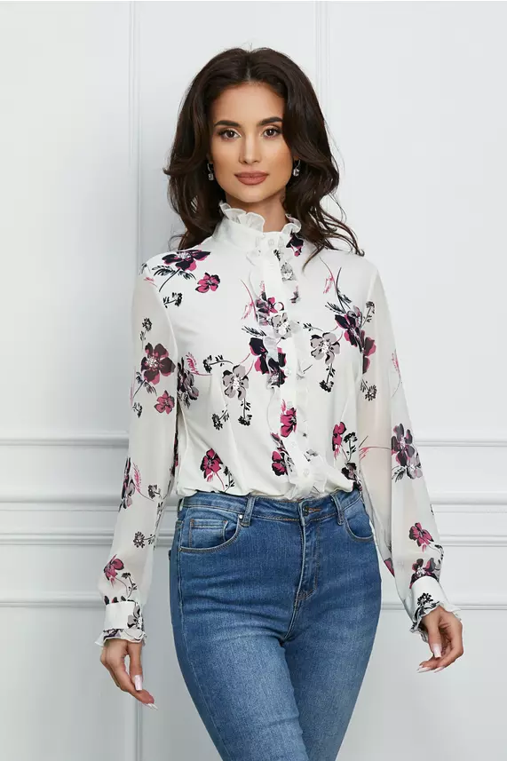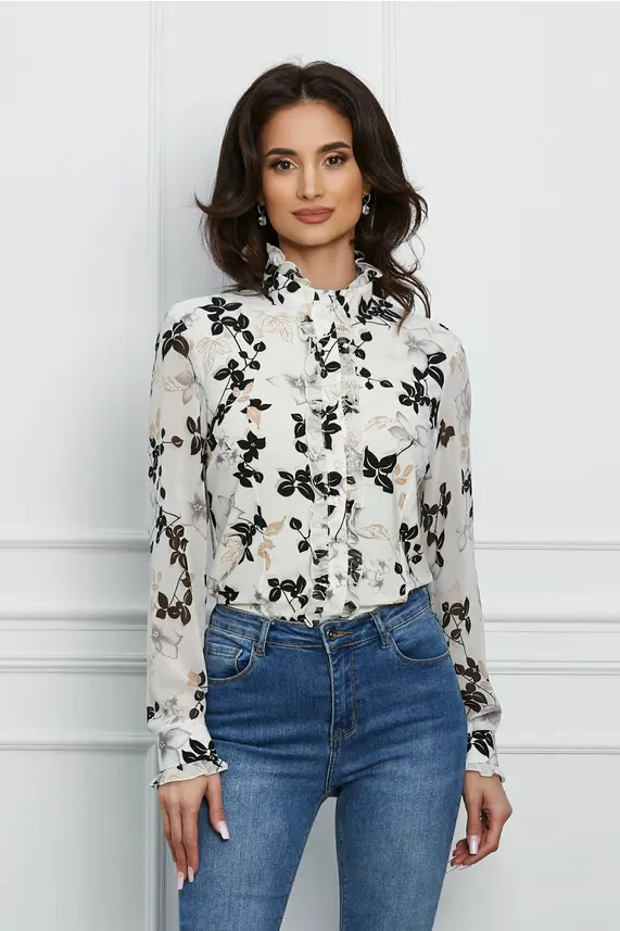 Camasa Sorina alba cu guler si imprimeu floral negru – CUMPARA ONLINE pe dyfashion.ro