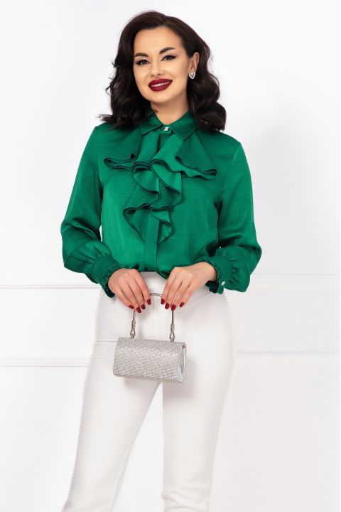 Camasa Moze verde cu guler alb si volane pe bust – CUMPARA ONLINE