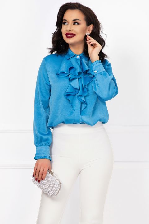 Camasa eleganta bleu texturata cu jabou amplu – VEZI DETALII SI PRET pe inpuff.ro