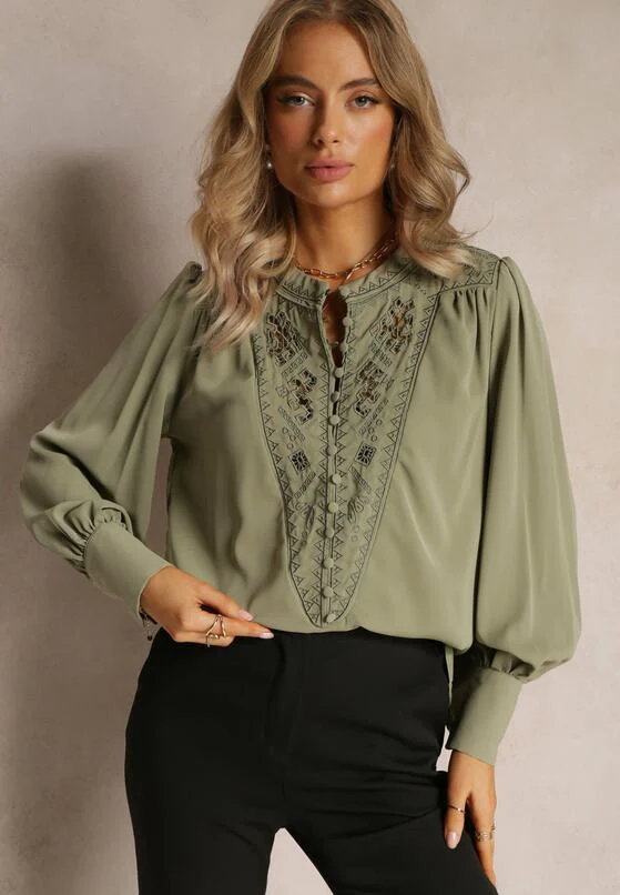 Camasa texturata cu jabou amplu eleganta verde – VEZI DETALII SI PRET pe inpuff.ro
