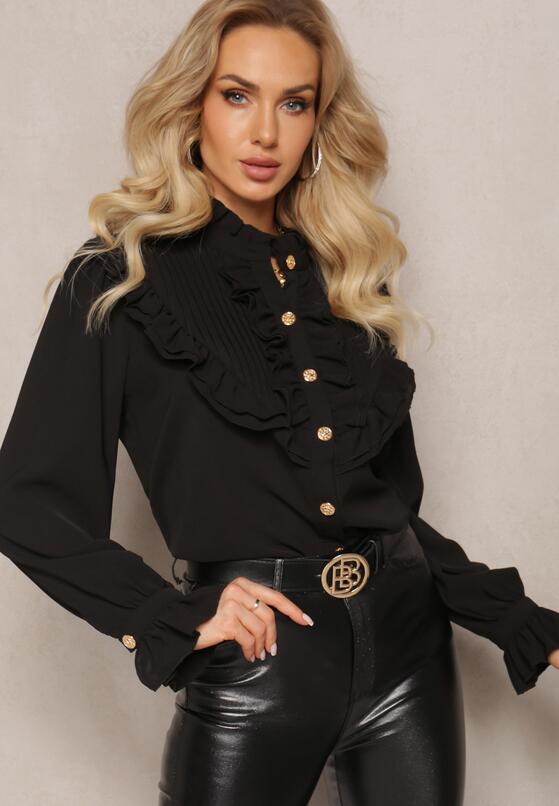 Camasa office cambrata Pretty Girl neagra cu nasturi aurii – CUMPARA ONLINE pe inpuff