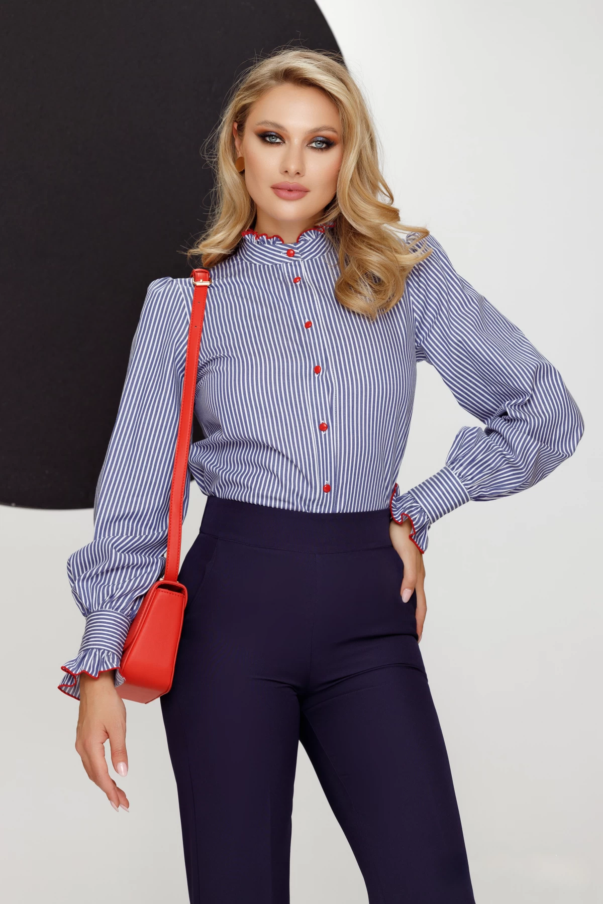 Camasa office Fofy cu volane conturate si dungi – CUMPARA ONLINE pe inpuff