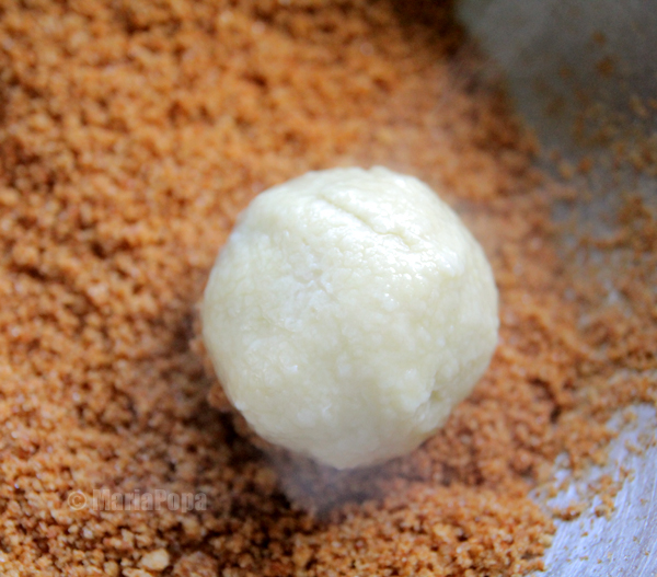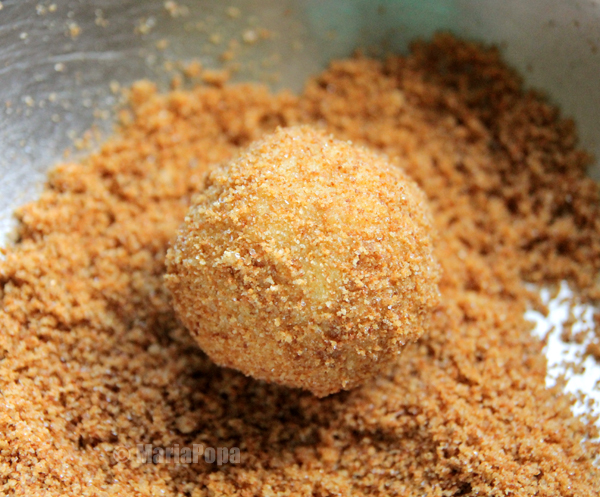Imediat dupa fierbere, galustele sunt transferate in pesmetul aromat si dulce.