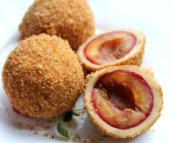 Galuste cu Prune si aluat fara cartofi, o reteta simpla, usoara care se prepara chiar si de incepatoarele in bucatarie. Aluatul fara cartofi, necesar pentru formarea galustelor cu prune, este un aluat oparit, dar diferit de cel pentru ecler si choux a la creme. Prunele trebuie sa isi mentina forma, dar sa fie coapte. Decorul de pesmet, unt, zahar si scortioara ofera un deliciu maxim preparatului Galuste cu Prune.