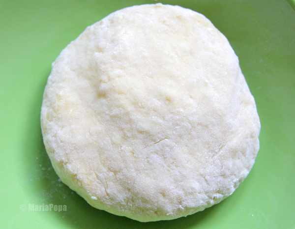Prafuim palmele cu faina, luam o bila de aluat si presam usor cu palma.