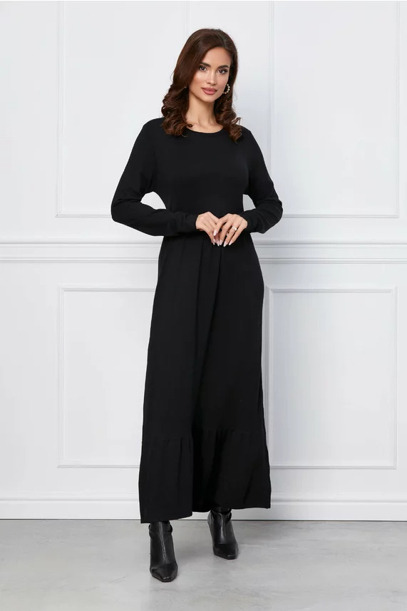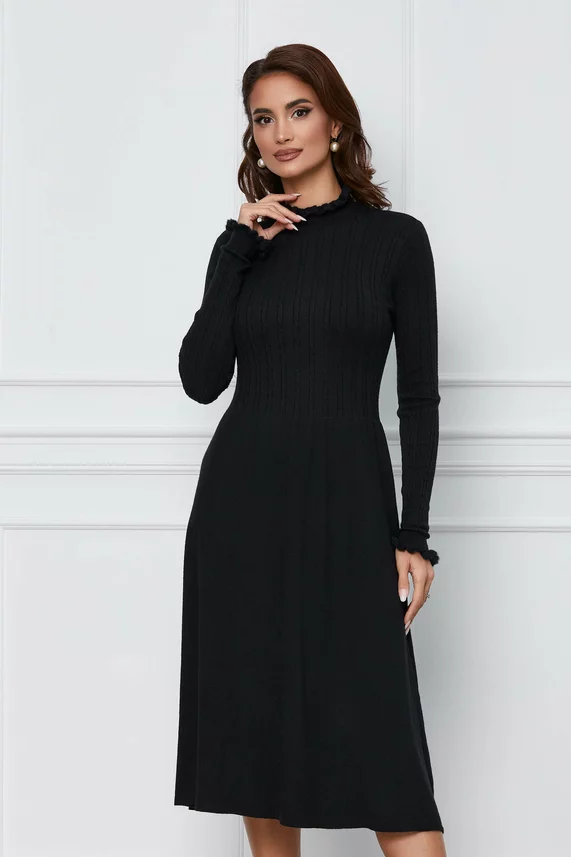 Rochie Ivonne neagra din tricot lejera cu volan la baza – CUMPARA ONLINE