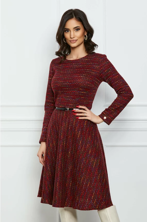 Rochie bordo cu picatele colorate si curea in talie – CUMPARA ONLINE