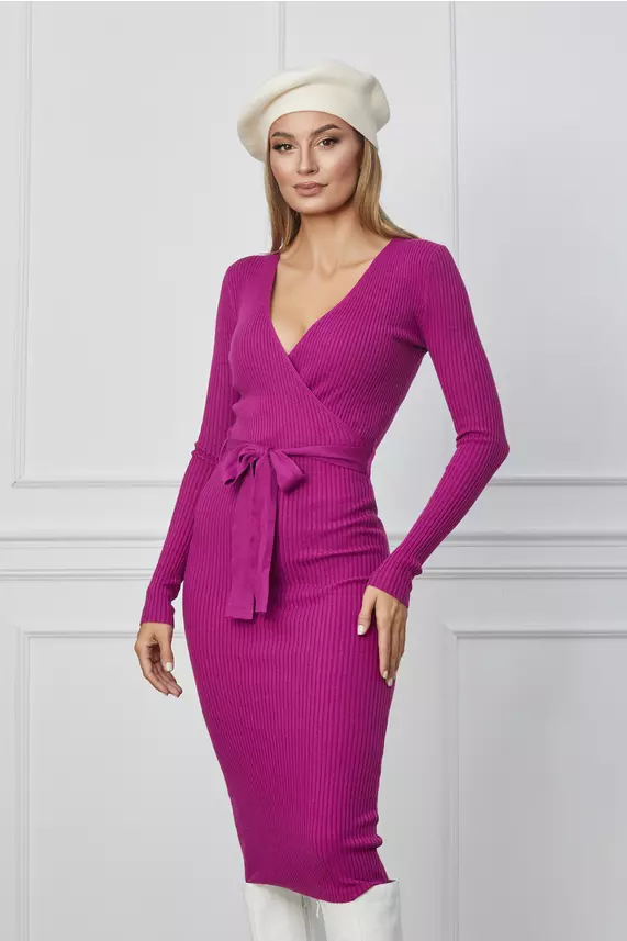 Rochie Alma magenta din tricot cu decolteu petrecut si cordon in talie – CUMPARA ONLINE pe dyfashion