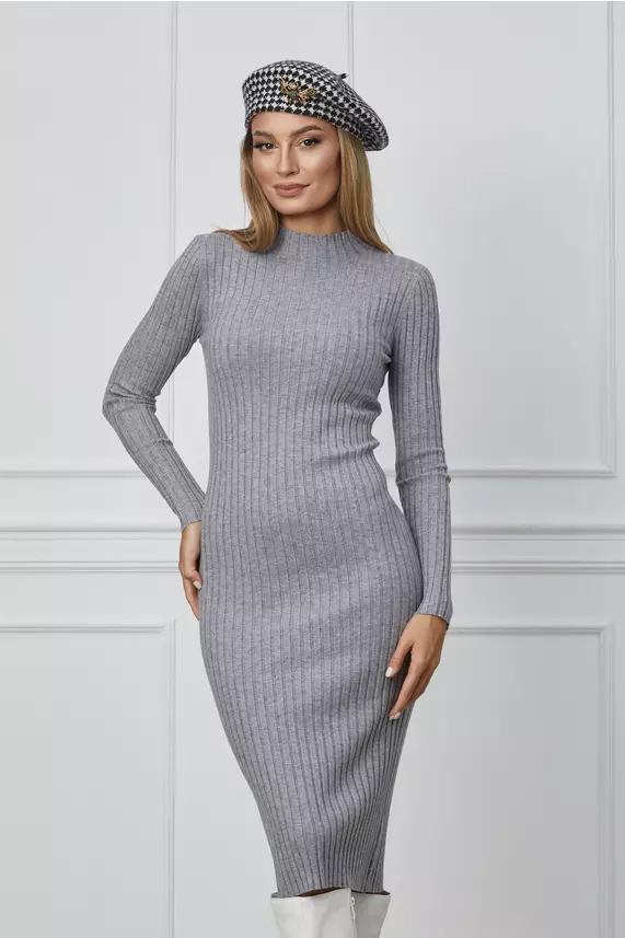 Rochie Maria gri casual din tricot reiat- CUMPARA ONLINE pe dyfashion